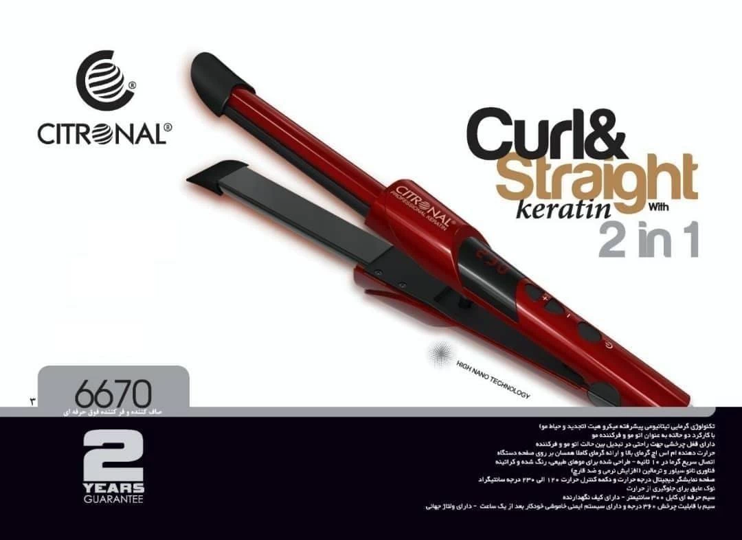 اتومو دو کاره سیترونال 6670 یک ابزار مناسب برای صاف نمودن و همچنین فر نمودن موهای سر می باشد. به همین دلیل است که به این اتو، اتو موی دوکاره گفته می شود.