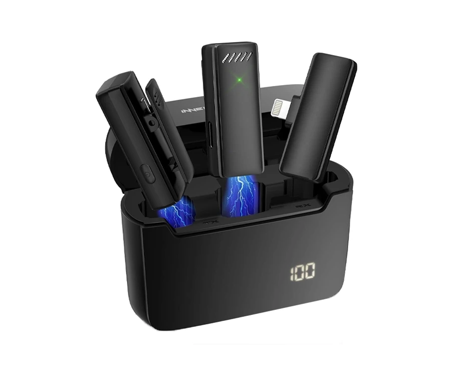 میکروفون بی سیم M6 از برند Luxceo، یک میکروفون یقهای با ابعاد بسیار کوچک بوده که با گوشیهای آیفون (تا آیفون 14) سازگار است. وجود 1 عدد گیرنده به همراه 2 فرستنده (میکروفون یقهای) به شما امکان میدهد بهطور همزمان صدای 2 نفر را ضبط کنید. بنابراین، از میکروفون Luxceo M6 میتوانید برای تولید محتوا، مصاحبه، کلاس آنلاین، پخش زنده و … استفاده کنید.