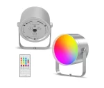 به کمک ریموت کنترل ارائه شده همراه نور Mood 2، میتوانید از دور و حداکثر فاصله 7 متری تنظیمات مورد نظر خود را اعمال کنید. حالت چشمک زن و تغییر رنگها با تغییر ریتم آهنگ به همراه 10 حالت نورپردازی صحنه از جمله نور شمع، ماشین آتش نشانی، آمبولانس و … از دیگر ویژگیهای این نور RGB است.