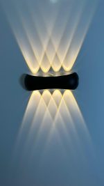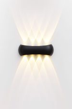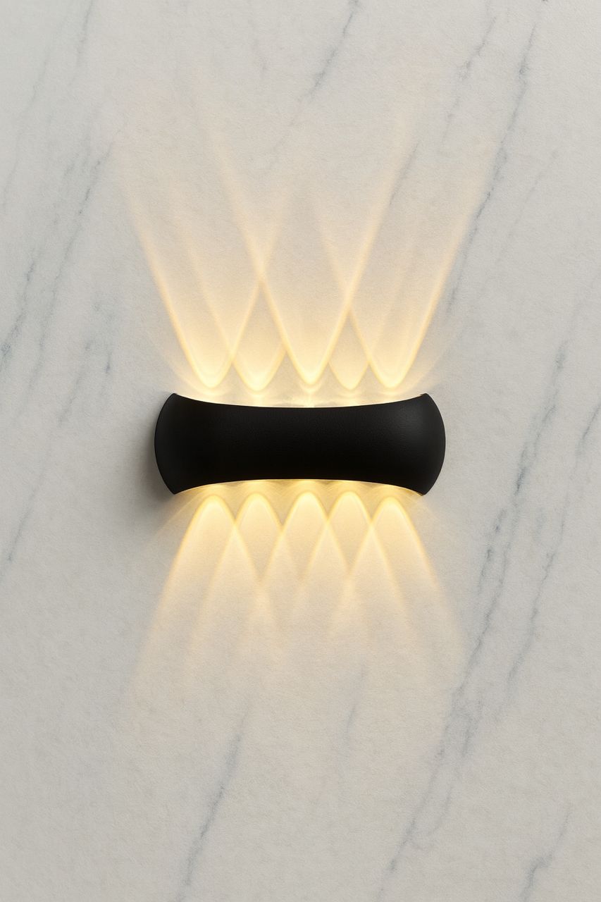 این چراغ دیواری با طراحی مینیمال و بدنه‌ی مشکی مات، جلوه‌ای خاص و لوکس به فضا می‌بخشد.